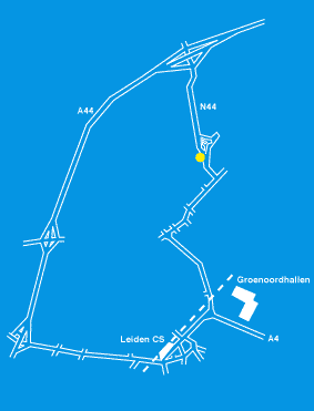 Bij rotonde linksaf richting Leiden (N445). Bij volgende rotonde rechtdoor. Bij eerste verkeerslicht rechtdoor, Leiden in. Volgende verkeerslicht rechtdoor (W. de Zwijgerlaan) richting centrum/station. Volg vanaf hier de weg aangegeven op bovenstaande kaart.